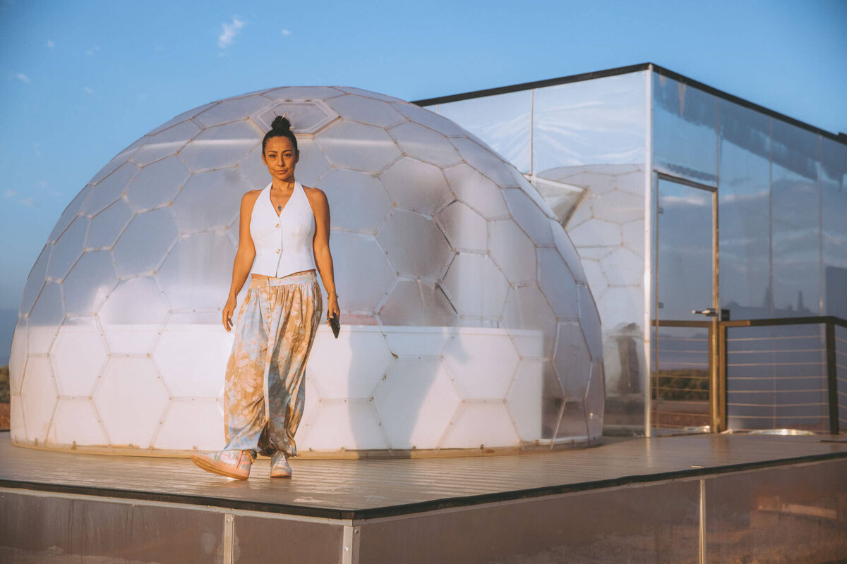 They shot on top of a volcano, a metaphor for the higher perspective she teaches.